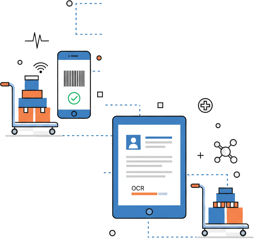 Pixigine’in gelişmiş çözümleriyle, tıbbi cihazlar, ekipmanlar ve sarf malzemelerinin üzerindeki barkod ve QR kodlarını anında okuyarak gerçek zamanlı takip sağlayın. OCR teknolojimizle hasta kayıtları, reçeteler, fatura ve diğer sağlık belgelerini otomatik olarak dijitalleştirin.